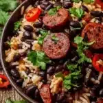 A comforting bowl of Black Beans and Rice with Sausage, hearty and packed with flavor.