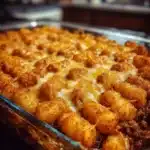 A comforting casserole with crispy tater tots, savory chili, and melty cheese, perfect for busy weeknights.