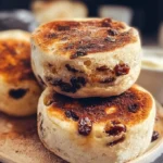 Fluffy, tangy homemade English muffins with sweet raisins and warm cinnamon, perfect for breakfast.