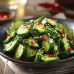 A refreshing and flavorful salad made with crunchy cucumbers and a savory dressing, perfect as a side dish or appetizer.