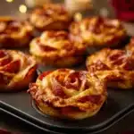 This is a fun treat for Valentine’s Day or any night you want pizza with a twist. Kids love the rose shape. You only need a few pantry staples. It bakes up golden and cheesy. You get beautiful bites with very little effort.