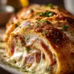 A warm, cheesy Italian Stromboli filled with delicious meats and spices, perfect for sharing.