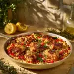 I love this Lemon-Feta Chicken and Orzo because it feels fresh and cozy at once. The lemon wakes up the dish. The feta adds a creamy, tangy finish. Orzo makes it feel a little like risotto, but much easier. If you like easy one-skillet dinners, try my crispy chicken bacon ranch wraps for another weeknight favorite.