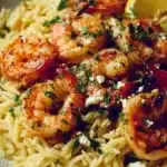 A light and satisfying one-pan meal featuring orzo pasta, plump shrimp, creamy feta, and bright lemon flavors.