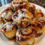 Using refrigerated biscuit dough saves time while still giving you that tender, flaky texture. Just slice, toss in sweet cinnamon-butter, bake, and glaze. You’ll get all the classic flavors of cinnamon rolls just in a mini, poppable version perfect for brunches, snacks, or sharing.