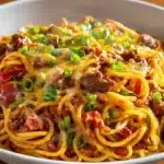 There’s something special about a warm bowl of One Pot Cowboy Spaghetti. It’s hearty, comforting, and full of flavor. Plus, who doesn’t love a recipe that comes together in just one pot? The blend of ground beef, Italian sausage, and bacon brings all the meaty goodness you crave. Toss in some veggies and cheese, and you’ve got a meal that feels like a big, warm hug.