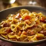 A cozy and satisfying one-pan pasta dish featuring smoky cajun sausage, a creamy sauce, and hearty bowtie pasta.