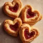Flaky and golden puff pastry hearts filled with sweet jam, perfect for brunch or a special treat.