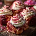 I love a kitchen that smells like cinnamon and chocolate. These Red Velvet Valentine’s Day Cinnamon Rolls feel like a hug. They are soft, slightly chocolatey, and full of cream cheese frosting. They look fancy but stay easy. I sometimes make them when friends stop by. I also pair them with other sweet rolls for a brunch spread, like my favorite cookies-and-cream cinnamon rolls. It makes the morning feel extra special.