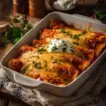 A quick weeknight meal featuring shredded chicken, cheese, and a cozy enchilada sauce, wrapped in tortillas and baked to melty perfection.